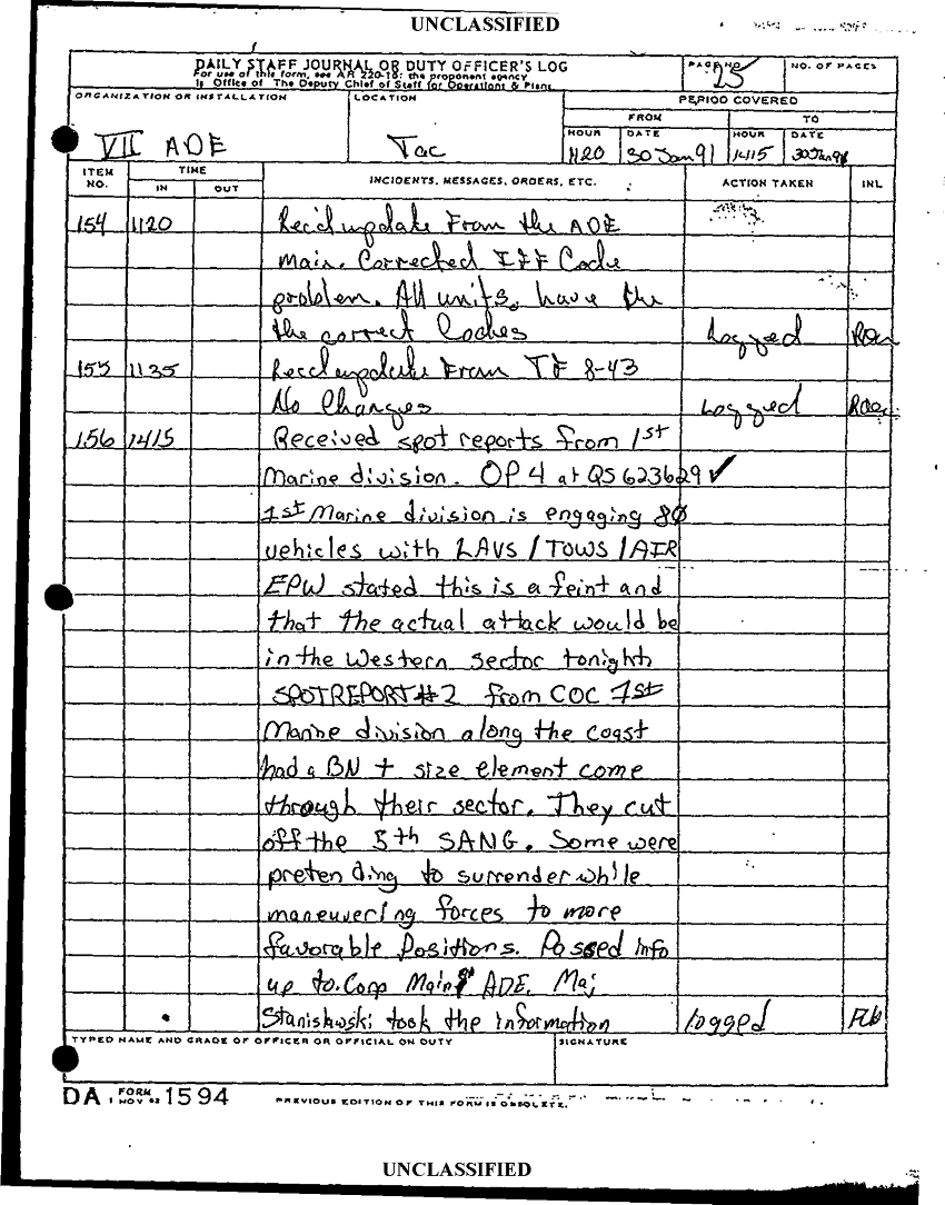 Subject = DAILY STAFF JOURNAL VII CORPS 19 JAN