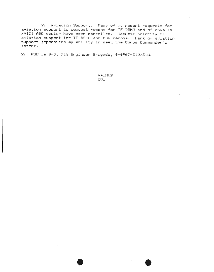 Document 87 f:/Week-24/BX000213/SITUATION REPORTS 7TH ENG BDE 22 DEC 90- 10 APR 91/daily commander sitrep:10259613090426