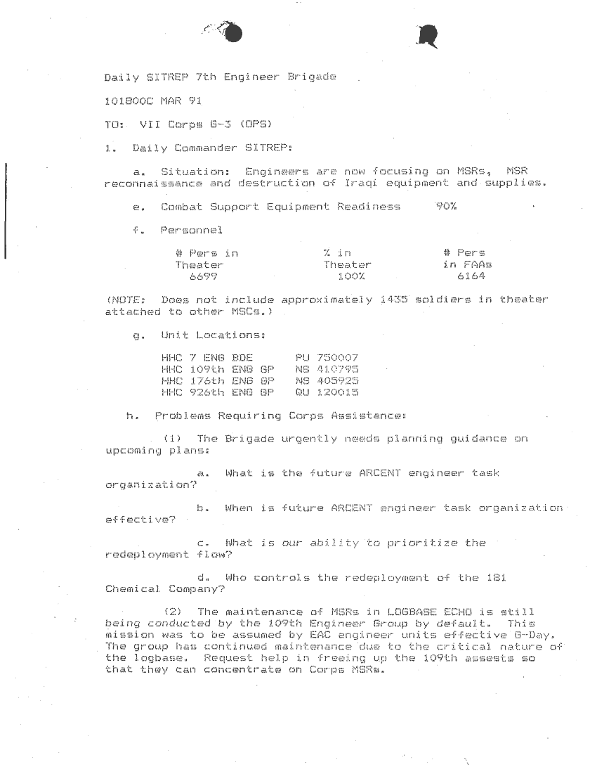 Folder Title = SITUATION REPORTS 7TH ENG BDE 22 DEC 90- 10 APR 91