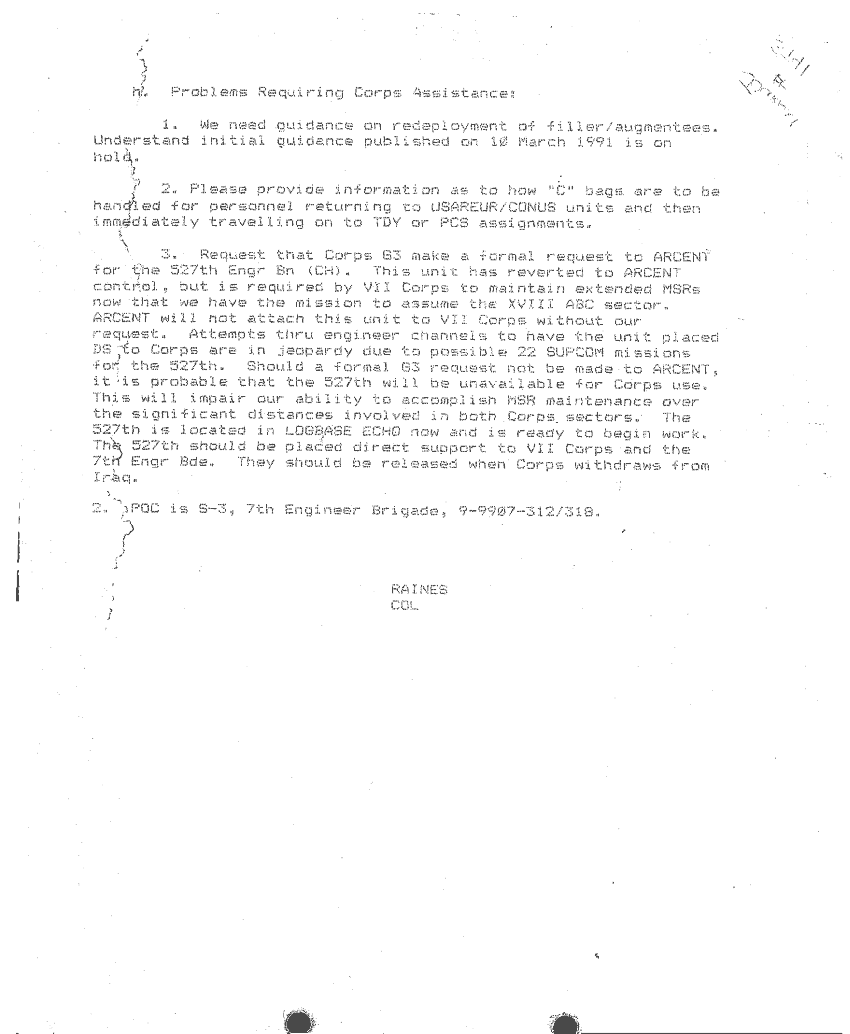Document 87 f:/Week-24/BX000213/SITUATION REPORTS 7TH ENG BDE 22 DEC 90- 10 APR 91/daily commander sitrep:10259613090426