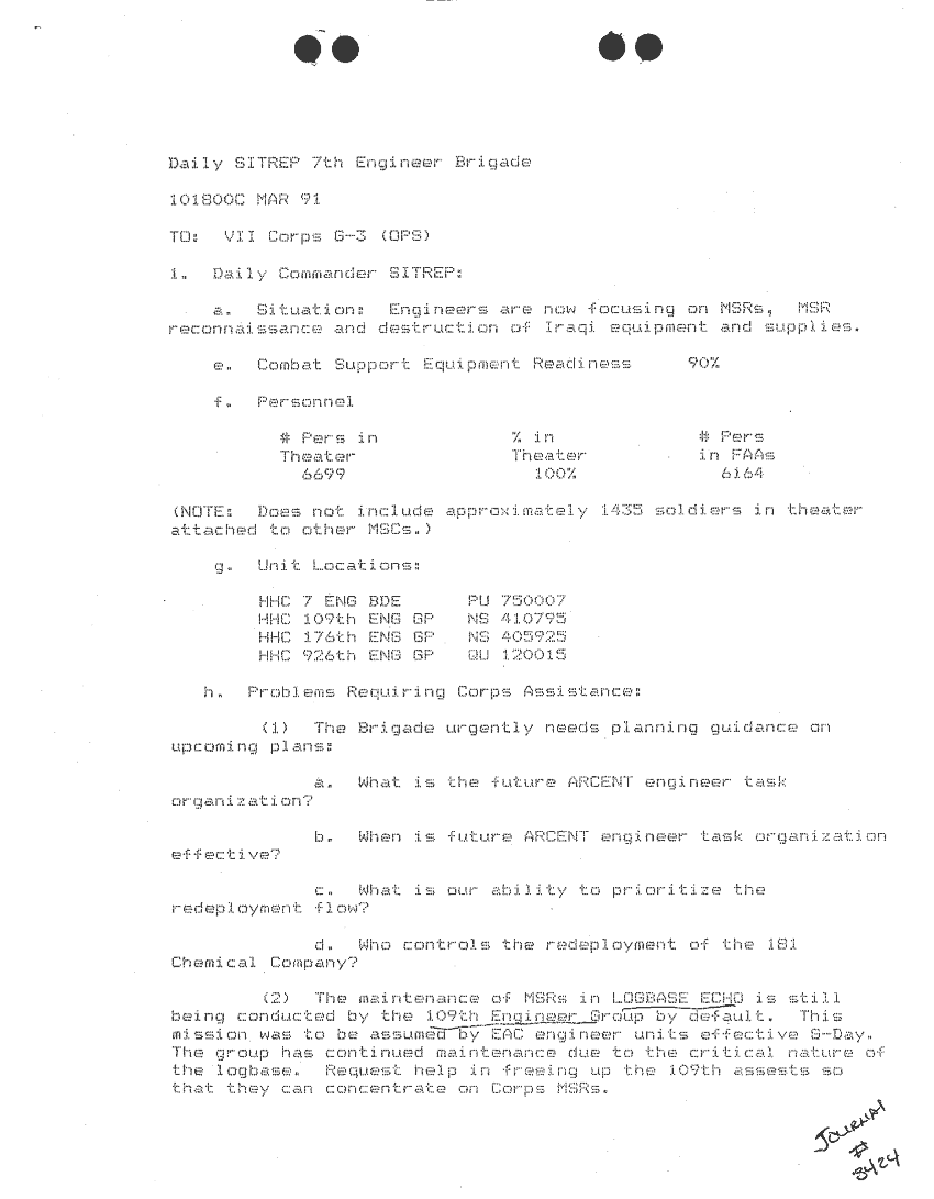 Folder Title = SITUATION REPORTS 7TH ENG BDE 22 DEC 90- 10 APR 91