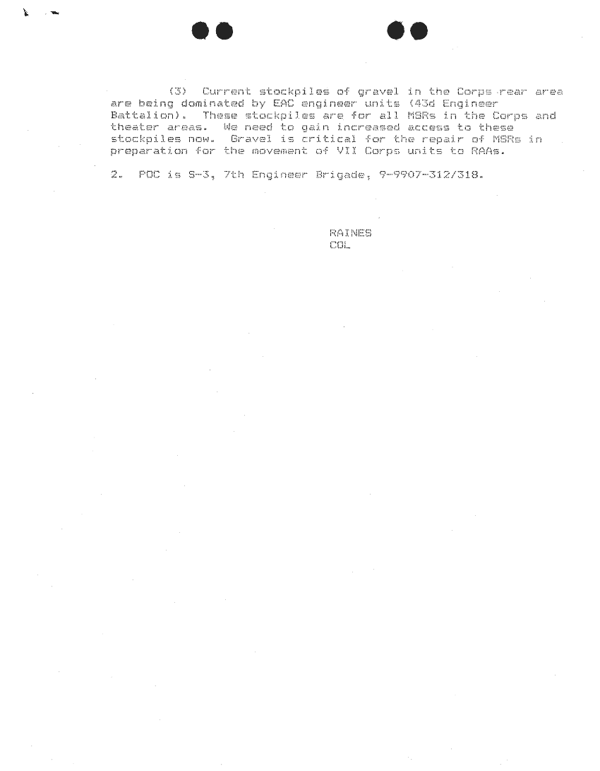 Document 87 f:/Week-24/BX000213/SITUATION REPORTS 7TH ENG BDE 22 DEC 90- 10 APR 91/daily commander sitrep:10259613090426