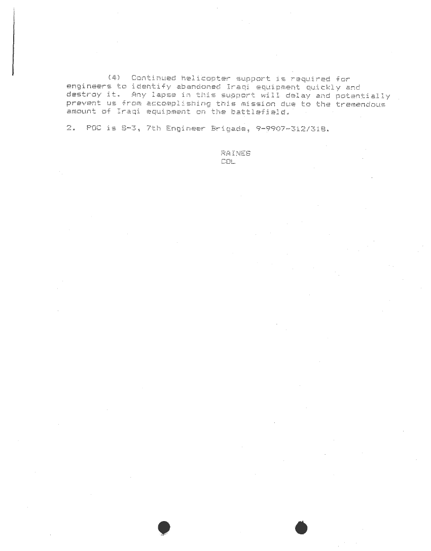 Document 87 f:/Week-24/BX000213/SITUATION REPORTS 7TH ENG BDE 22 DEC 90- 10 APR 91/daily commander sitrep:10259613090426