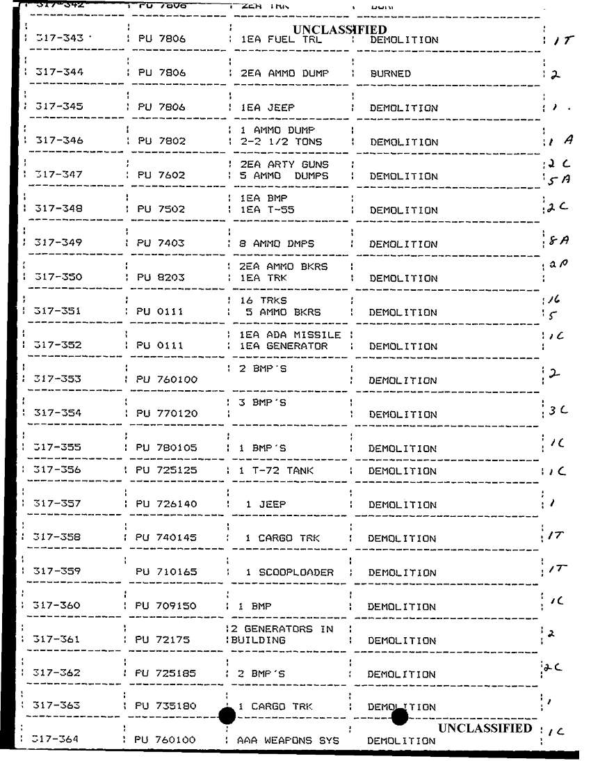 Document 12 f:/Week-24/BX000211/TASK FORCE DEMO DESTROYED TARGETS 1/annex b destruction rpt matrix frago 1 91 79 to :10259613090631
