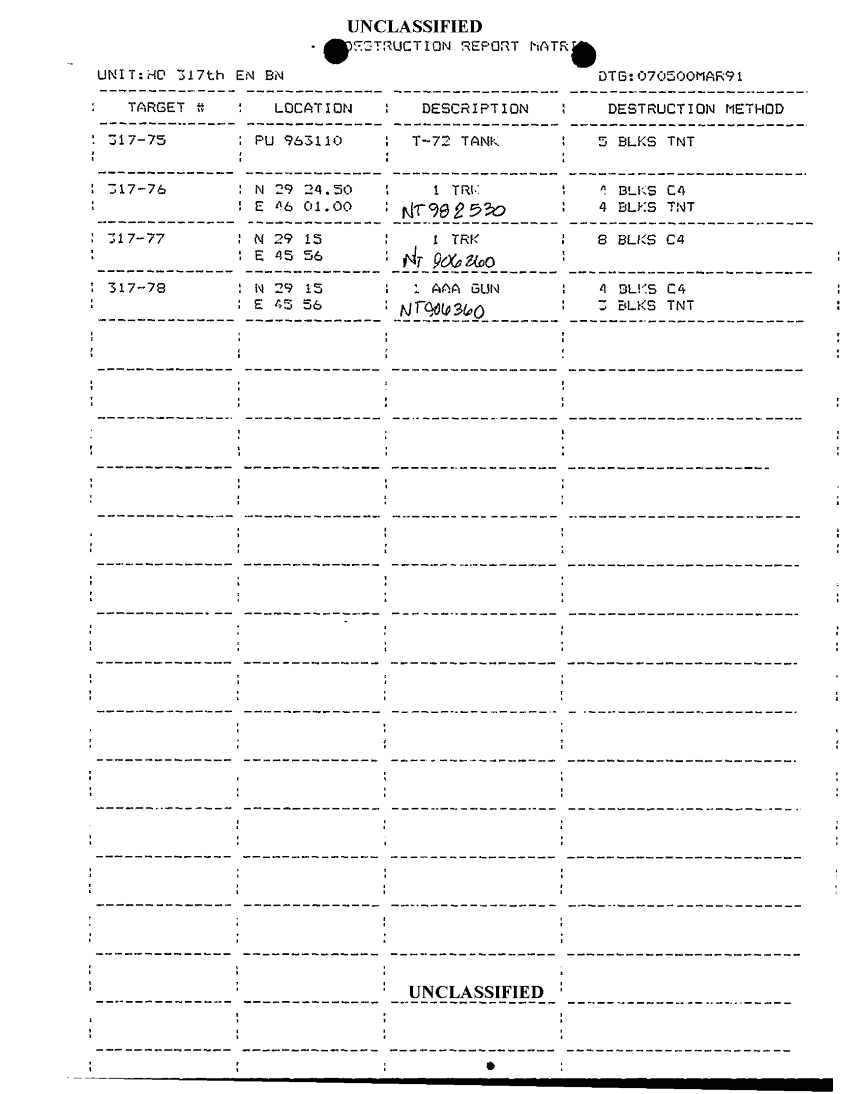 Document 12 f:/Week-24/BX000211/TASK FORCE DEMO DESTROYED TARGETS 1/annex b destruction rpt matrix frago 1 91 79 to :10259613090631