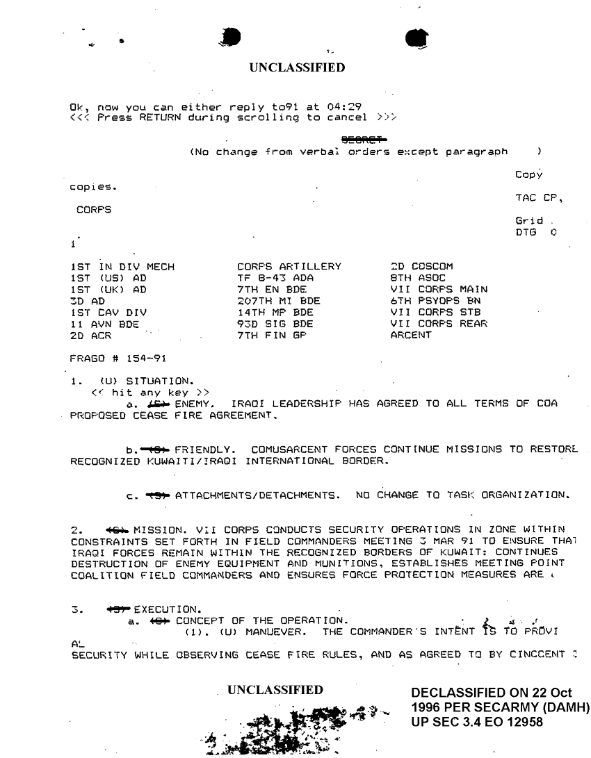 Document 3 f:/Week-24/BX000229/FRAGOS 16 JAN - 10 APR 91/frago 154 91:10259613091140