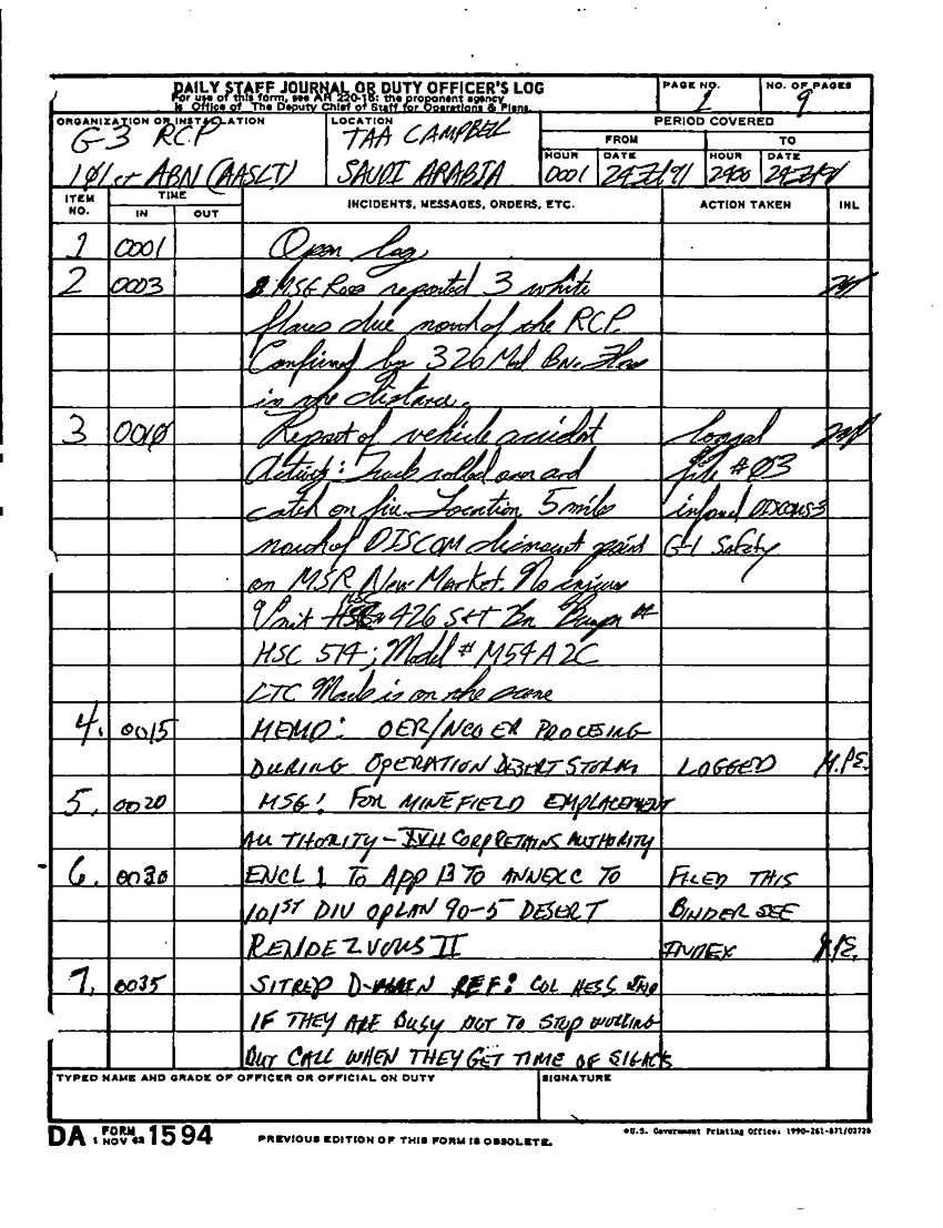 Document 48 f:/Week-22/BX001604/DUTY LOG G3 MAIN 15-27 SEP 90 G3 REAR 21-28 FEB 91/daily staff journal:10259613091549