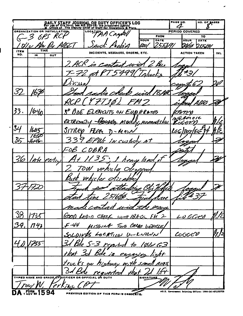 Document 48 f:/Week-22/BX001604/DUTY LOG G3 MAIN 15-27 SEP 90 G3 REAR 21-28 FEB 91/daily staff journal:10259613091549