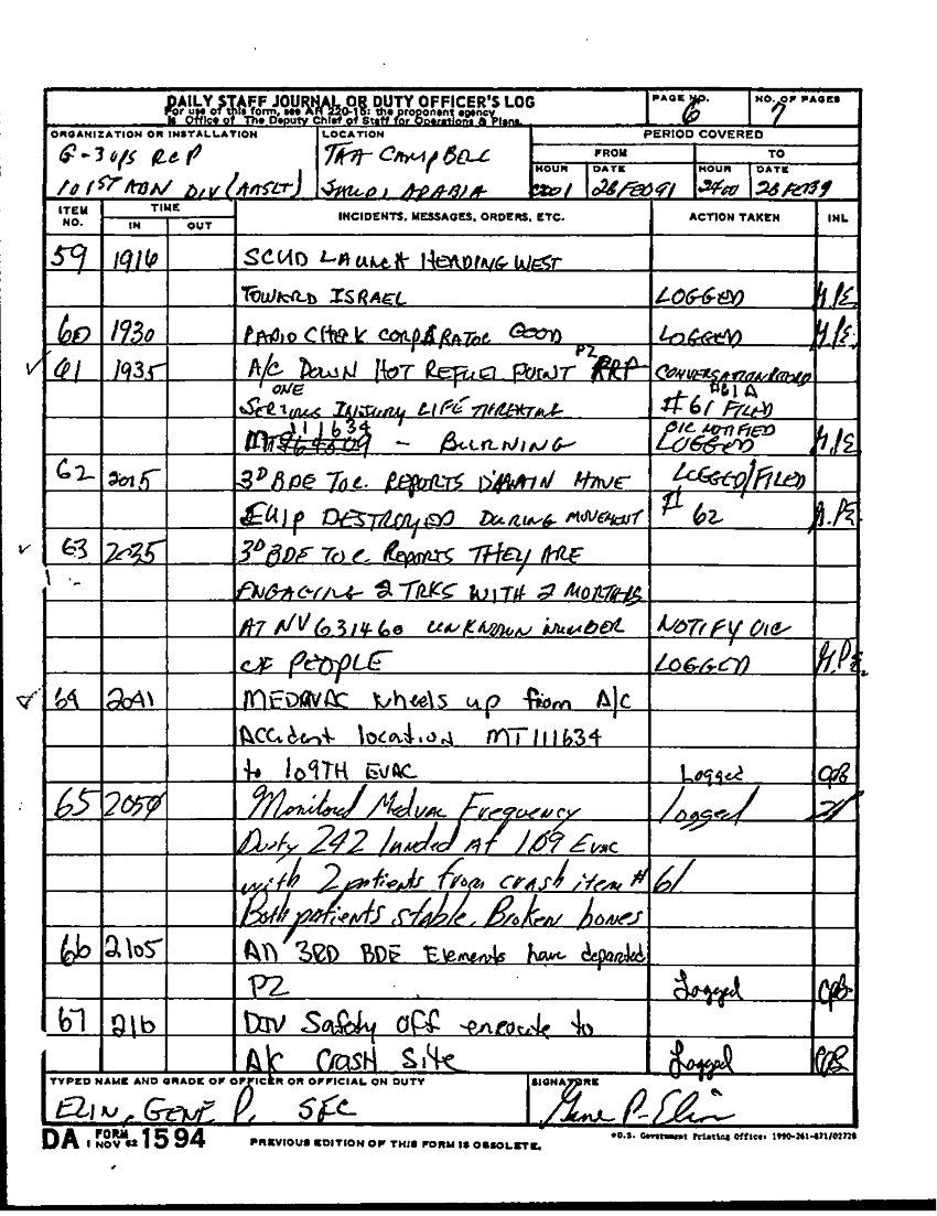 Document 48 f:/Week-22/BX001604/DUTY LOG G3 MAIN 15-27 SEP 90 G3 REAR 21-28 FEB 91/daily staff journal:10259613091549