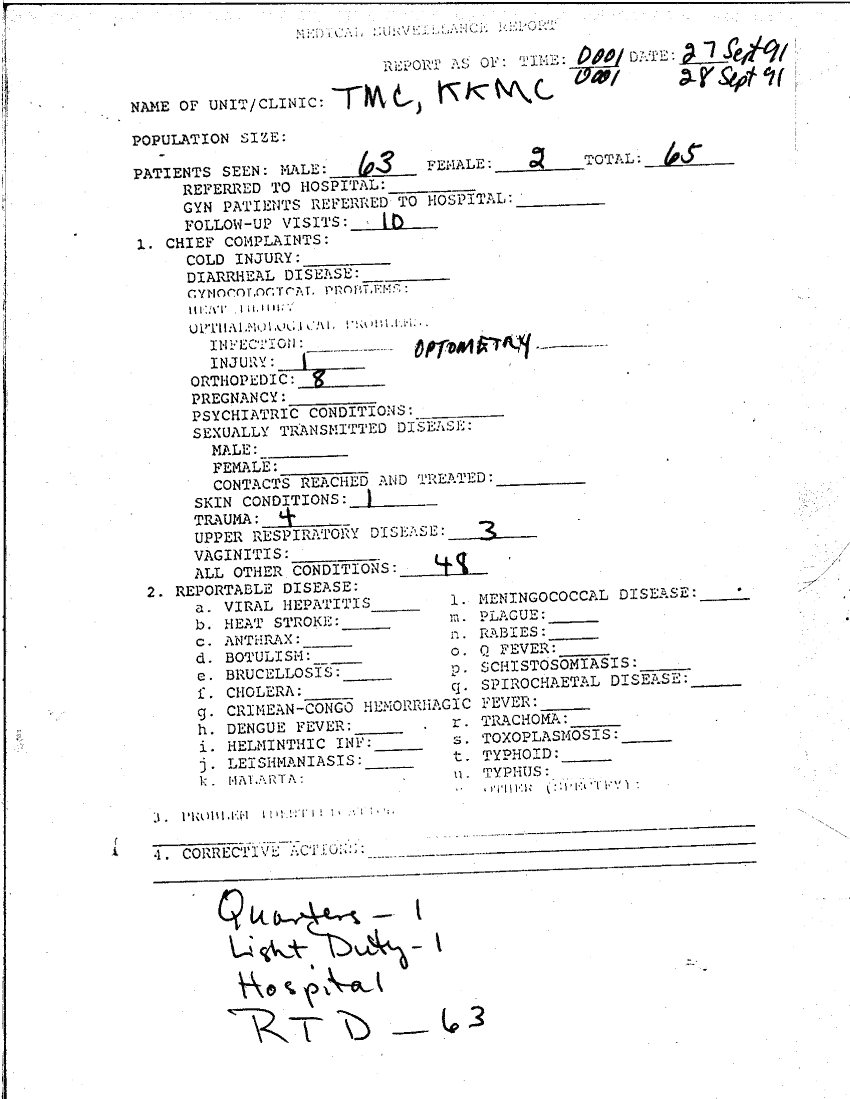 Folder Title = KKMC 212 MED DET MEDICAL SURVEILLANCE REPORTS 17 SEP - 05 NOV 91
