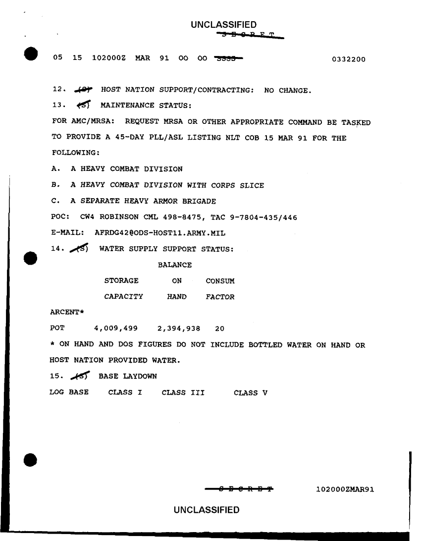 Document 15 f:/Week-33/BX000524/ARCENT LOGSTATS LOG 206 DATED 30 MARCH 1991/logstat 186 10 mar 91:11049609131344