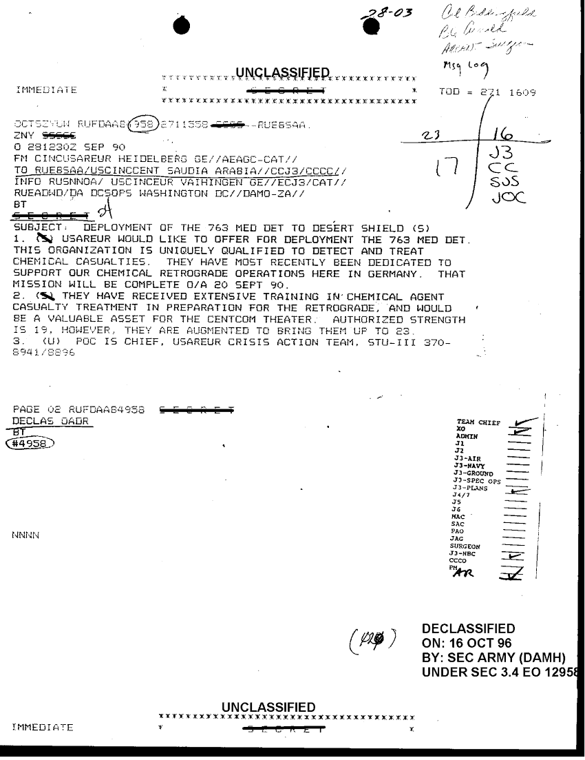 Subject = DEPLOYMENT OF 763 MED DET DESERT SHIELD