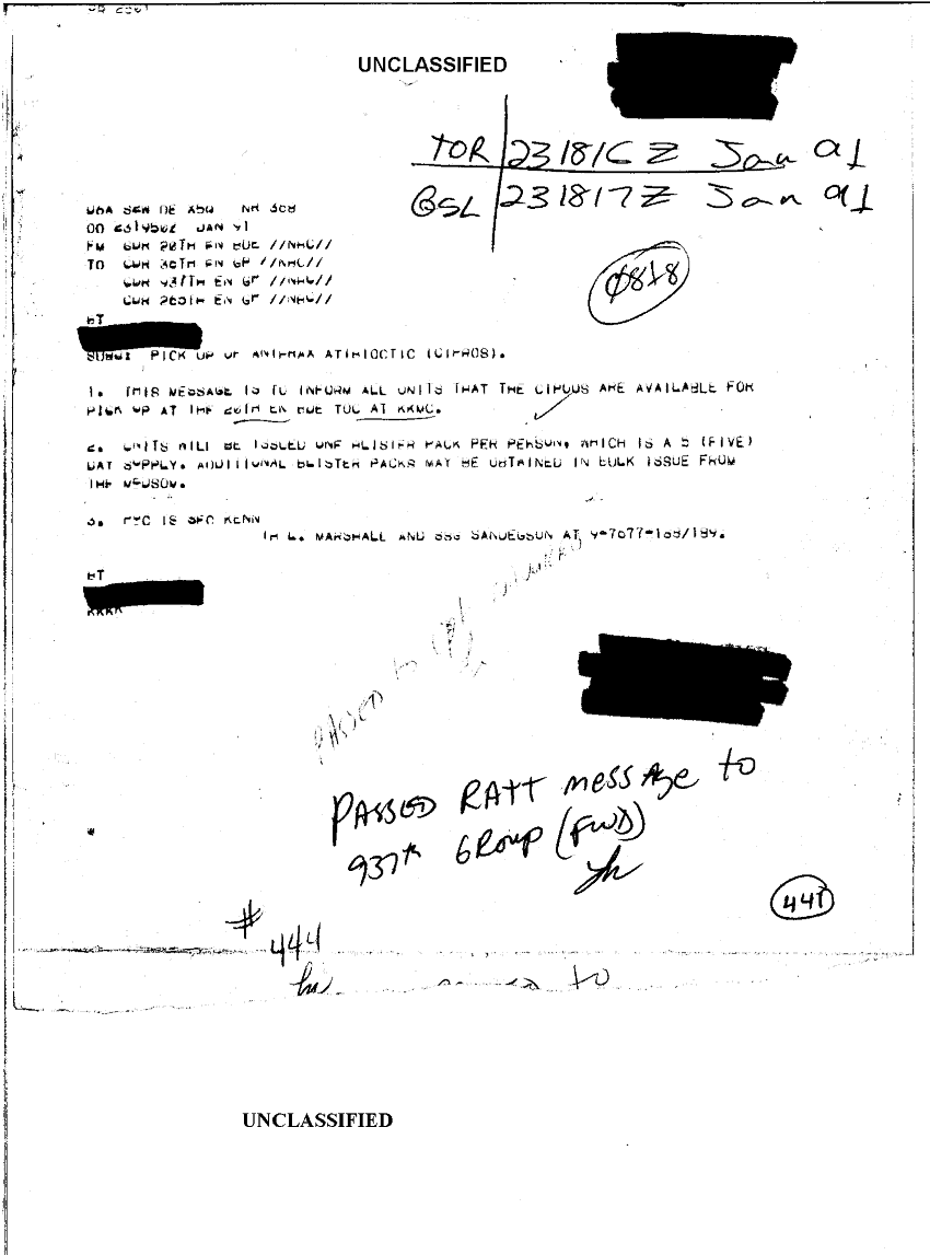 Document 1 f:/Week-26/BX001006/duty log 14 - 24 jan 91-1/pick up of anthrax antibiotic:1104960912449