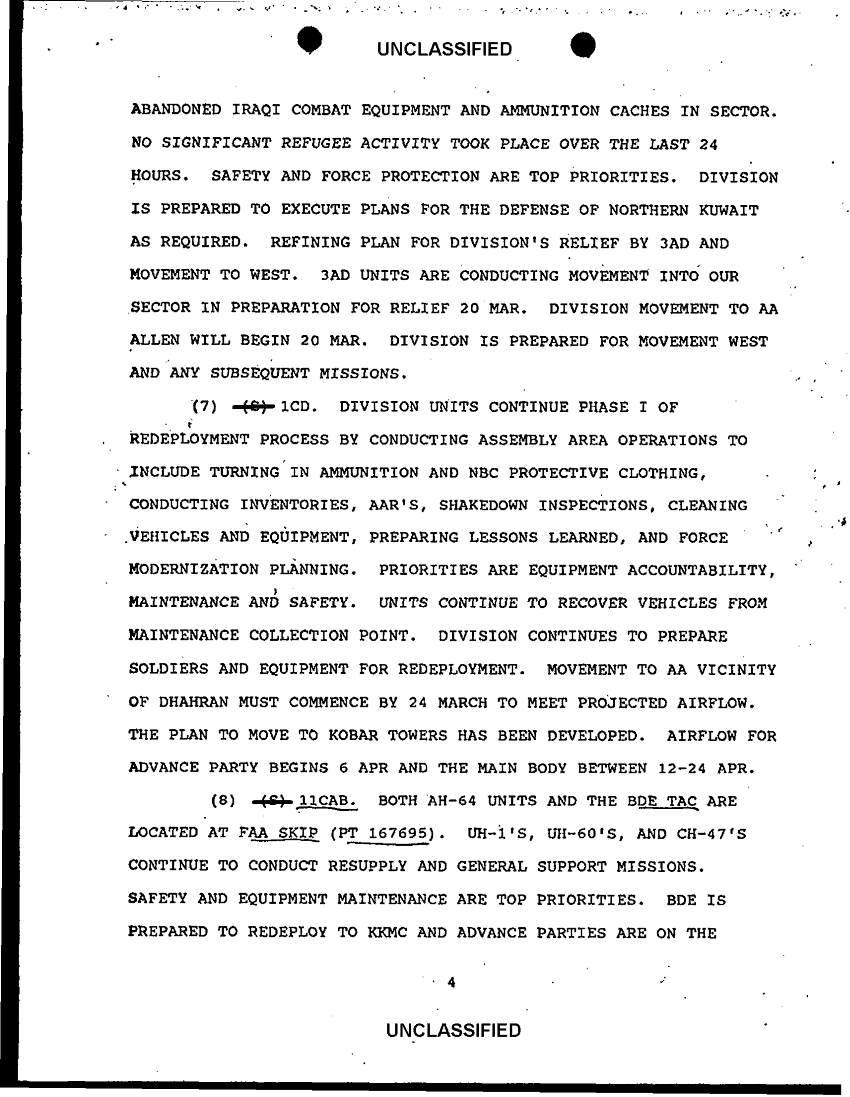 Folder Title = VII CORPS CMDRS SITREP 25-63 DTD 11 FEB THRU 21 MAR 91