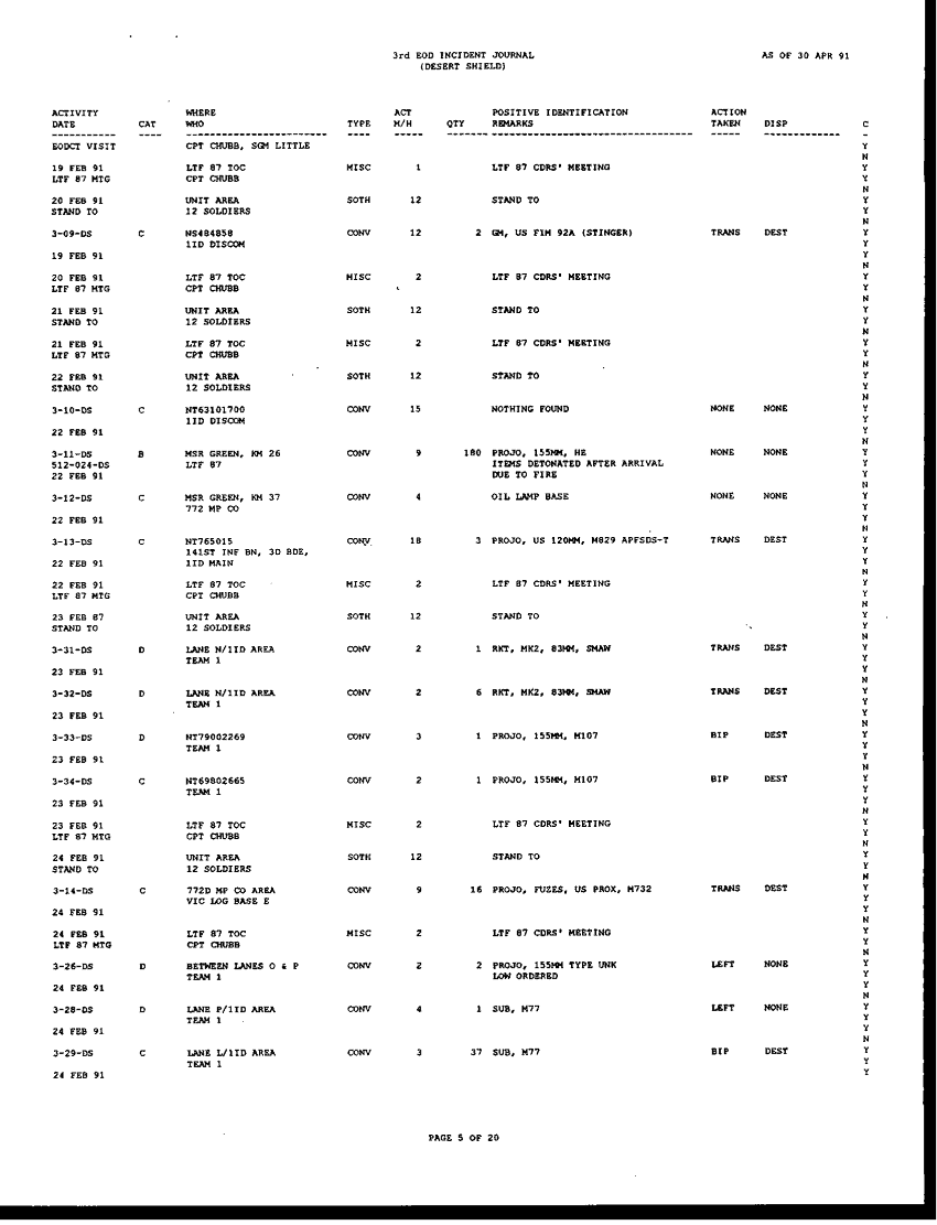 Document 196 f:/Week-42/BX005554/ARMY EOD IN DESERT STORM RESPONCE TO THE ASSISTANT SEC OF DEFENSE/request for information concerning eod operation:1104960912392