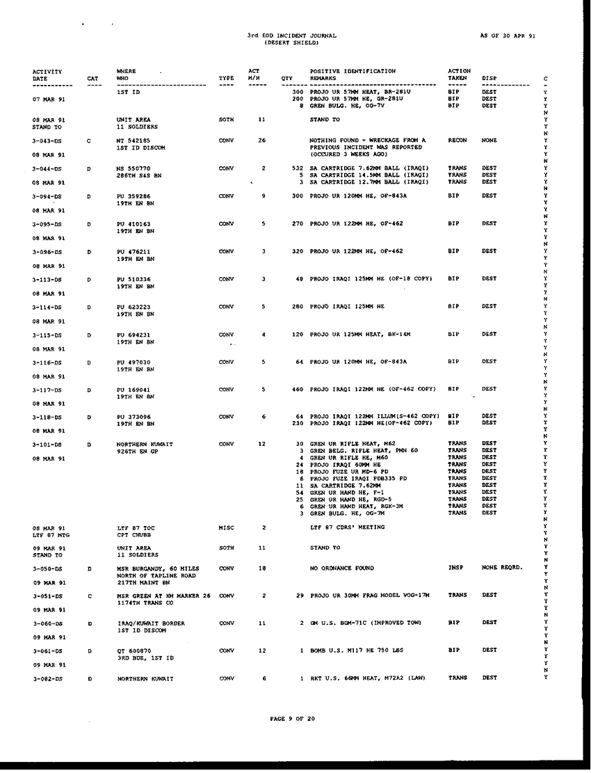 Document 196 f:/Week-42/BX005554/ARMY EOD IN DESERT STORM RESPONCE TO THE ASSISTANT SEC OF DEFENSE/request for information concerning eod operation:1104960912392