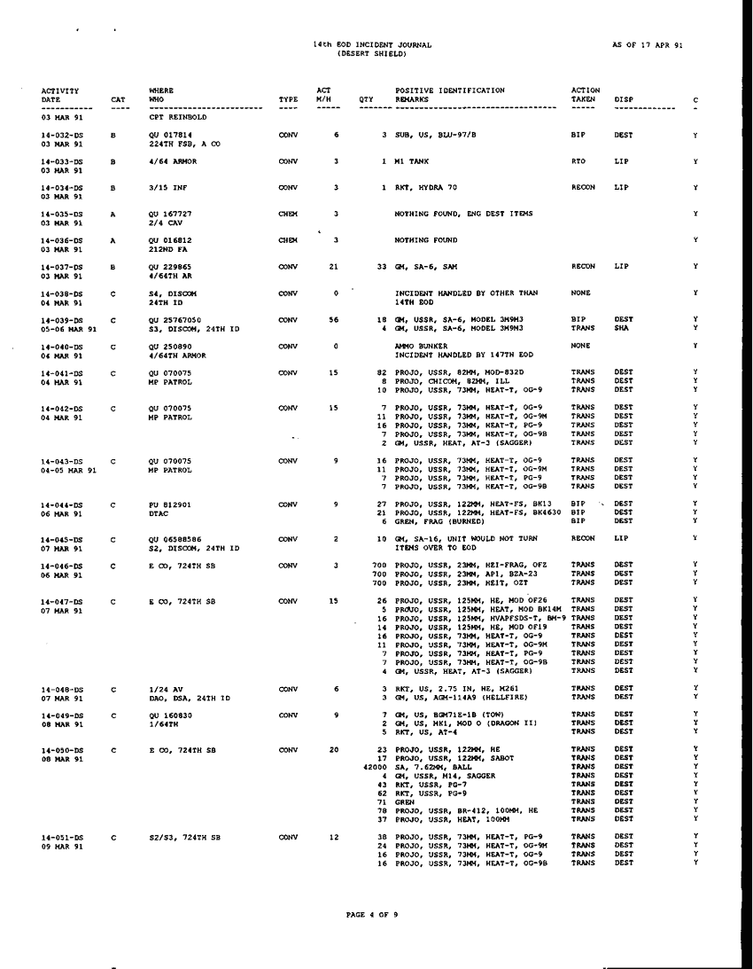 Document 196 f:/Week-42/BX005554/ARMY EOD IN DESERT STORM RESPONCE TO THE ASSISTANT SEC OF DEFENSE/request for information concerning eod operation:1104960912392