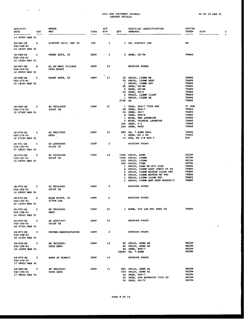 Document 196 f:/Week-42/BX005554/ARMY EOD IN DESERT STORM RESPONCE TO THE ASSISTANT SEC OF DEFENSE/request for information concerning eod operation:1104960912392