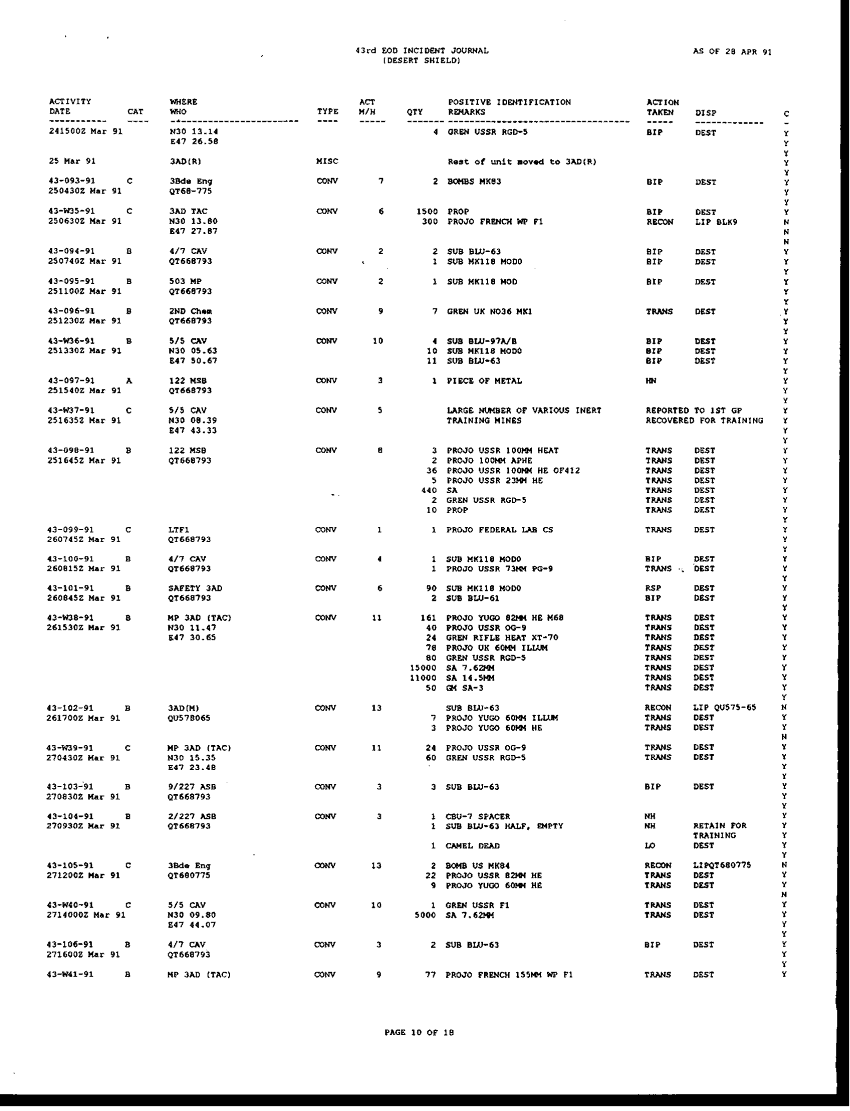Document 196 f:/Week-42/BX005554/ARMY EOD IN DESERT STORM RESPONCE TO THE ASSISTANT SEC OF DEFENSE/request for information concerning eod operation:1104960912392