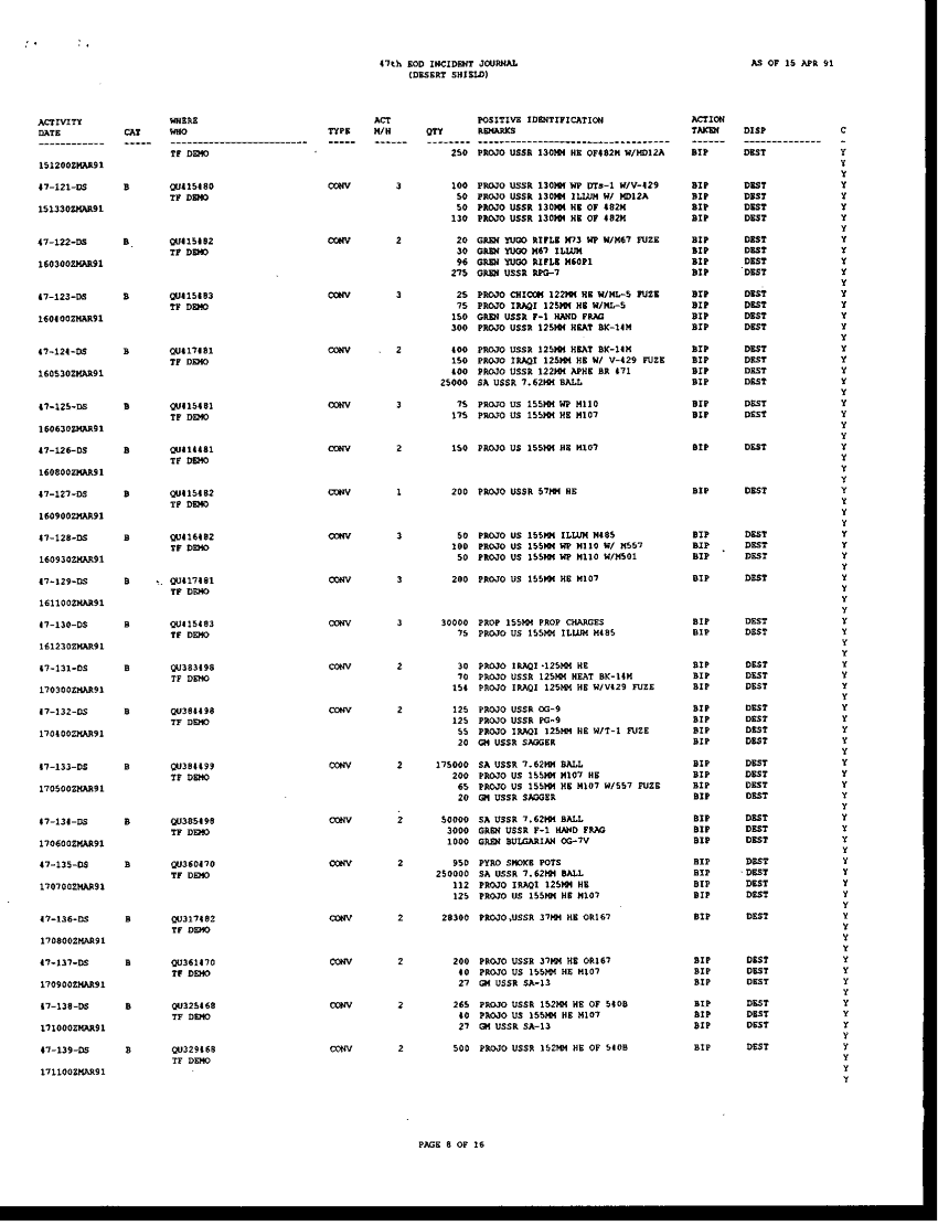 Document 196 f:/Week-42/BX005554/ARMY EOD IN DESERT STORM RESPONCE TO THE ASSISTANT SEC OF DEFENSE/request for information concerning eod operation:1104960912392
