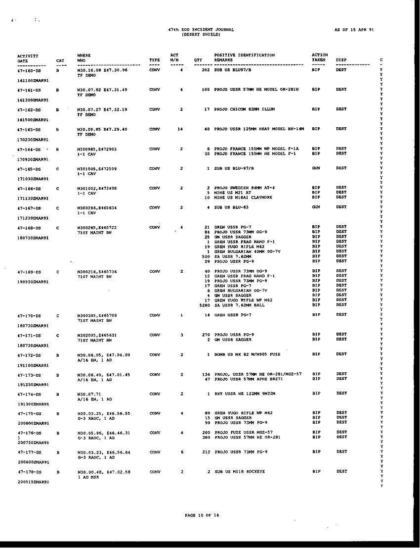 Document 196 f:/Week-42/BX005554/ARMY EOD IN DESERT STORM RESPONCE TO THE ASSISTANT SEC OF DEFENSE/request for information concerning eod operation:1104960912392