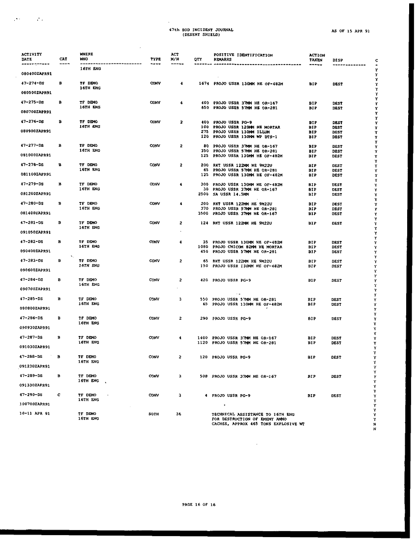 Document 196 f:/Week-42/BX005554/ARMY EOD IN DESERT STORM RESPONCE TO THE ASSISTANT SEC OF DEFENSE/request for information concerning eod operation:1104960912392
