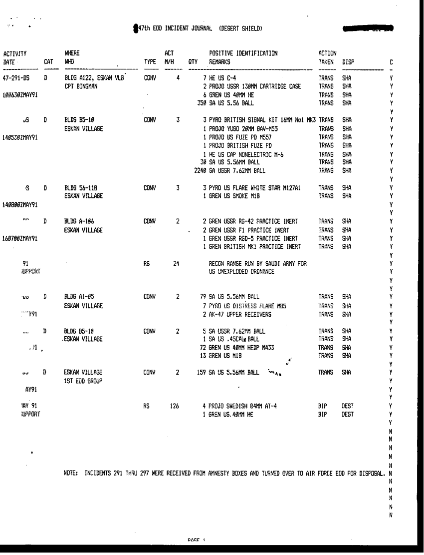 Document 196 f:/Week-42/BX005554/ARMY EOD IN DESERT STORM RESPONCE TO THE ASSISTANT SEC OF DEFENSE/request for information concerning eod operation:1104960912392