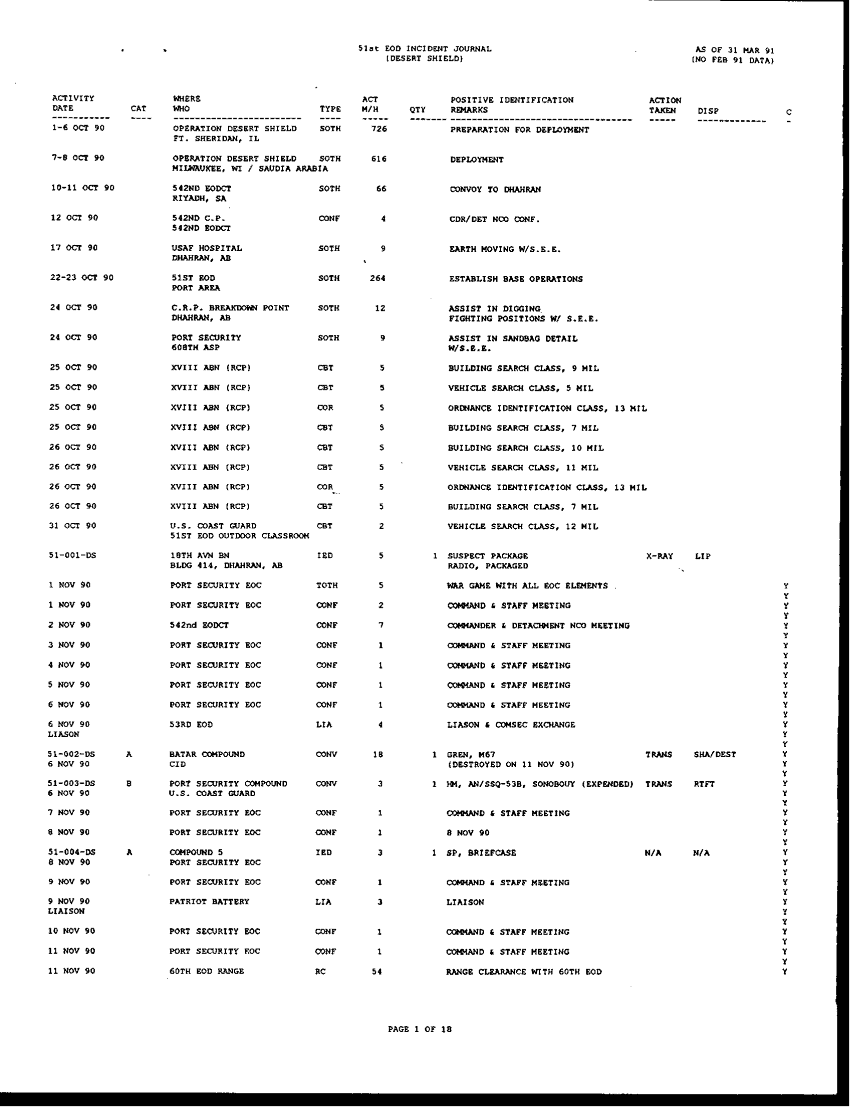 Subject = REQUEST FOR INFORMATION CONCERNING EOD OPERATION