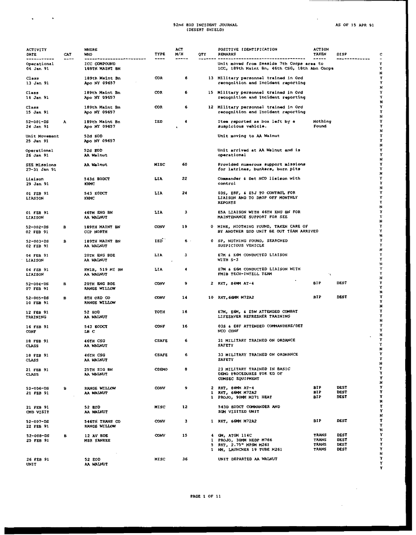 Document 196 f:/Week-42/BX005554/ARMY EOD IN DESERT STORM RESPONCE TO THE ASSISTANT SEC OF DEFENSE/request for information concerning eod operation:1104960912392