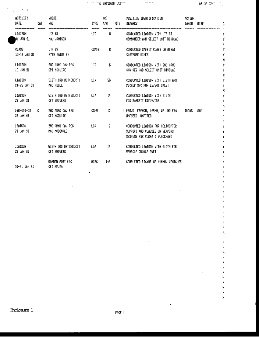 Document 27 f:/Week-42/BX005554/ARMY EOD IN DESERT STORM VOL 5 512 EOD CONTROL TEAM EODCT/reply to questionaire for all detachments:11049609124410