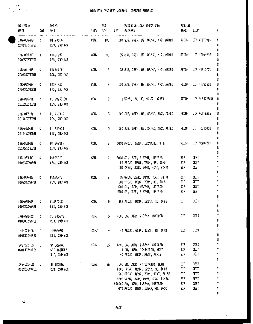 Document 27 f:/Week-42/BX005554/ARMY EOD IN DESERT STORM VOL 5 512 EOD CONTROL TEAM EODCT/reply to questionaire for all detachments:11049609124410