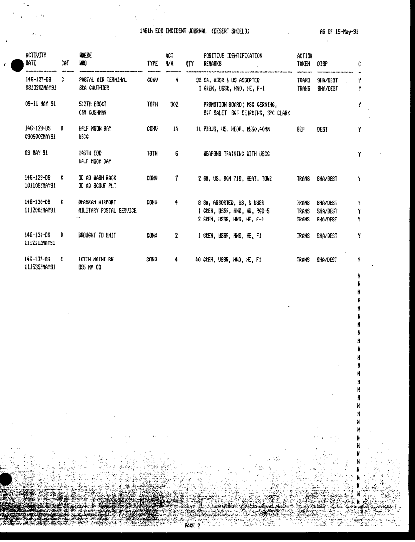 Document 27 f:/Week-42/BX005554/ARMY EOD IN DESERT STORM VOL 5 512 EOD CONTROL TEAM EODCT/reply to questionaire for all detachments:11049609124410