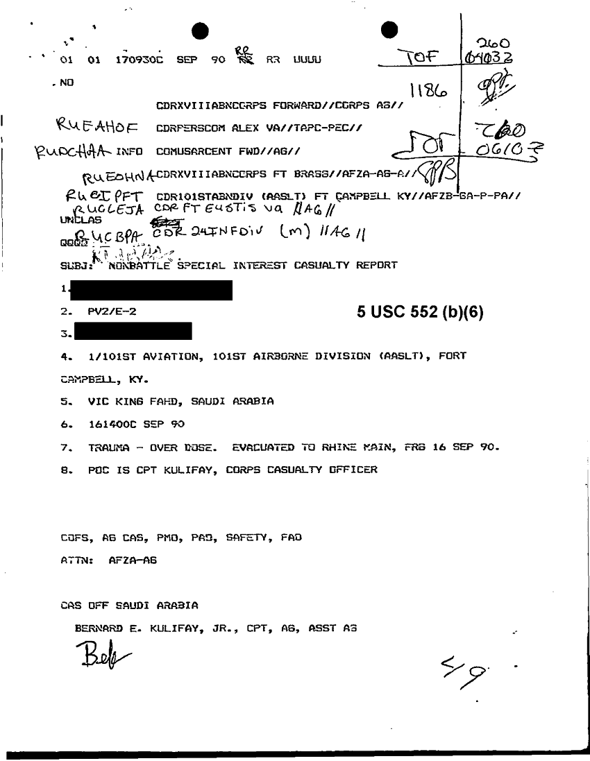 Document 10 f:/Week-15/BX000052/DUTY LOG G3 16-31 SEP 90/nonbattle special interest casualty report:1108961514028