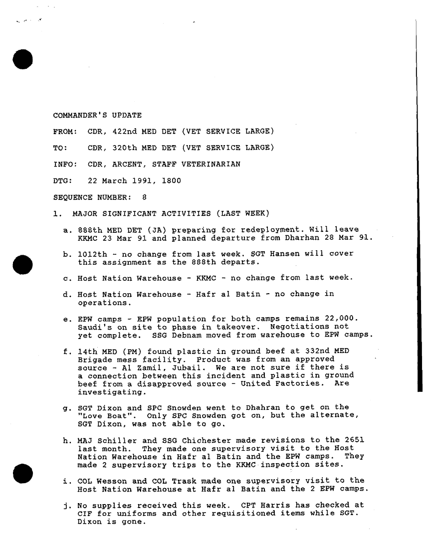 Document 38 f:/Week-32/BX000481/COMMAND REPORTS 422SD MED DET VETERINARY SVCS COMMAND REPORT/weekly commander updates app b:11229616374042