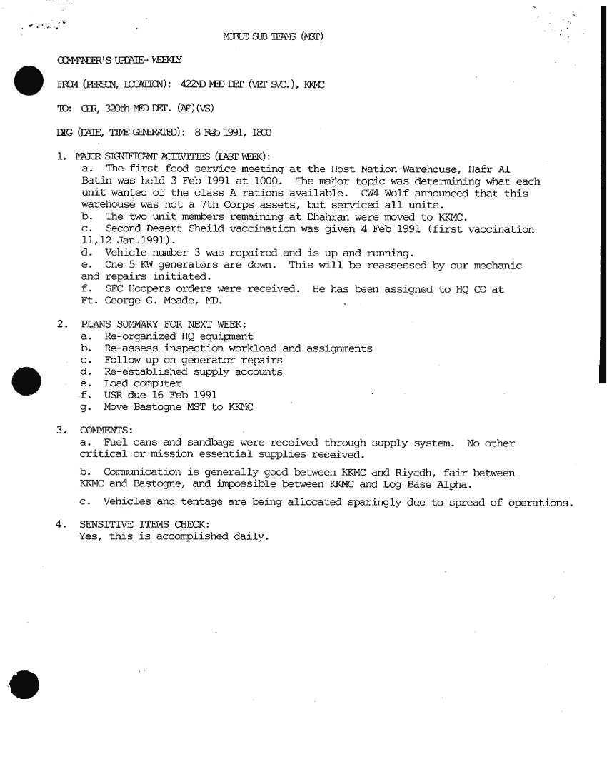 Document 38 f:/Week-32/BX000481/COMMAND REPORTS 422SD MED DET VETERINARY SVCS COMMAND REPORT/weekly commander updates app b:11229616374042