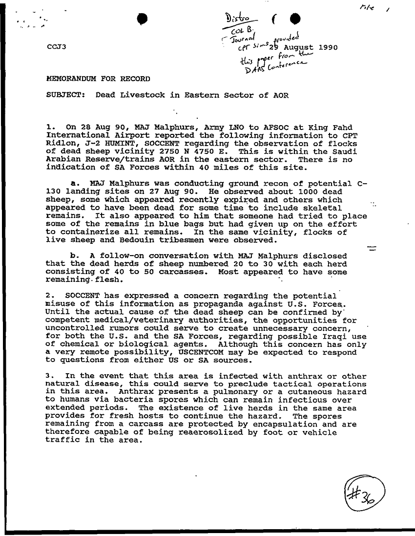 Document 3 f:/Week-32/BX000490/DAILY STAFF JOURNAL ARCENT 29 - 30 AUG 90/dead livestock in easter sector of aor 29 aug :11229616374143