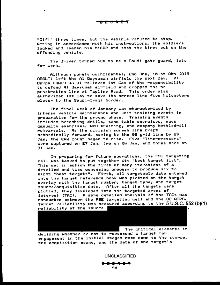 Subject = CHAPTER SEVEN DEFENSE OF THE WADI AL BATIN