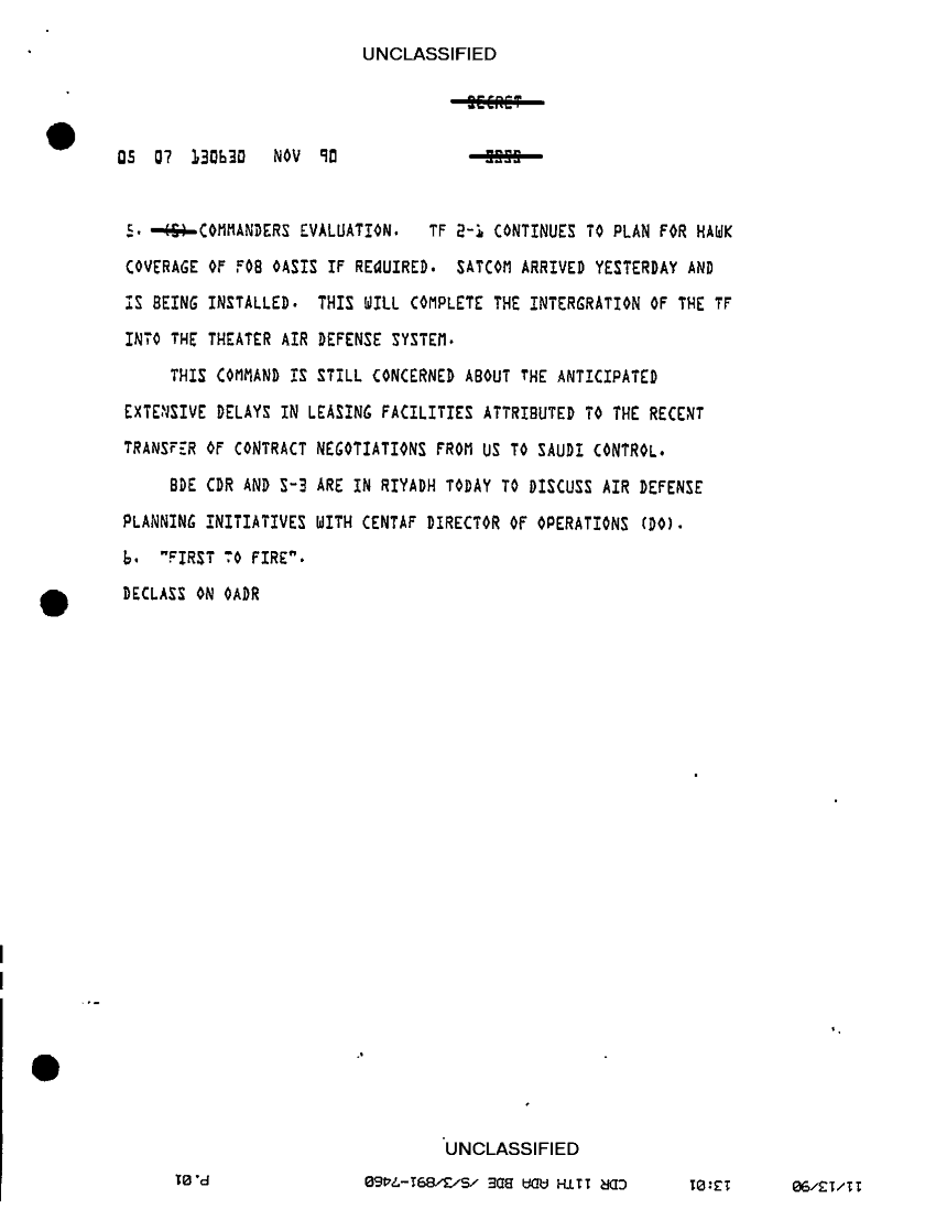 Folder Title = COMMAND REPORTS SITREPS 11TH ADA BDE 6 OCT 90-23 NOV 90