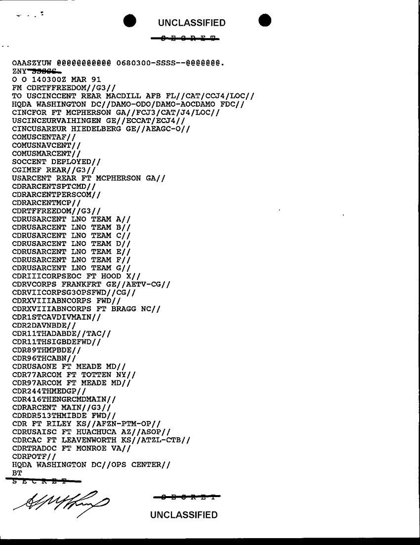 Document 6 f:/Week-33/BX000494/COMMMAND REPORTS RPTS TASK FORCE FREEDOM 1 OF 2 -1/sitrep tf freedom 13 mar 91:11089615151144