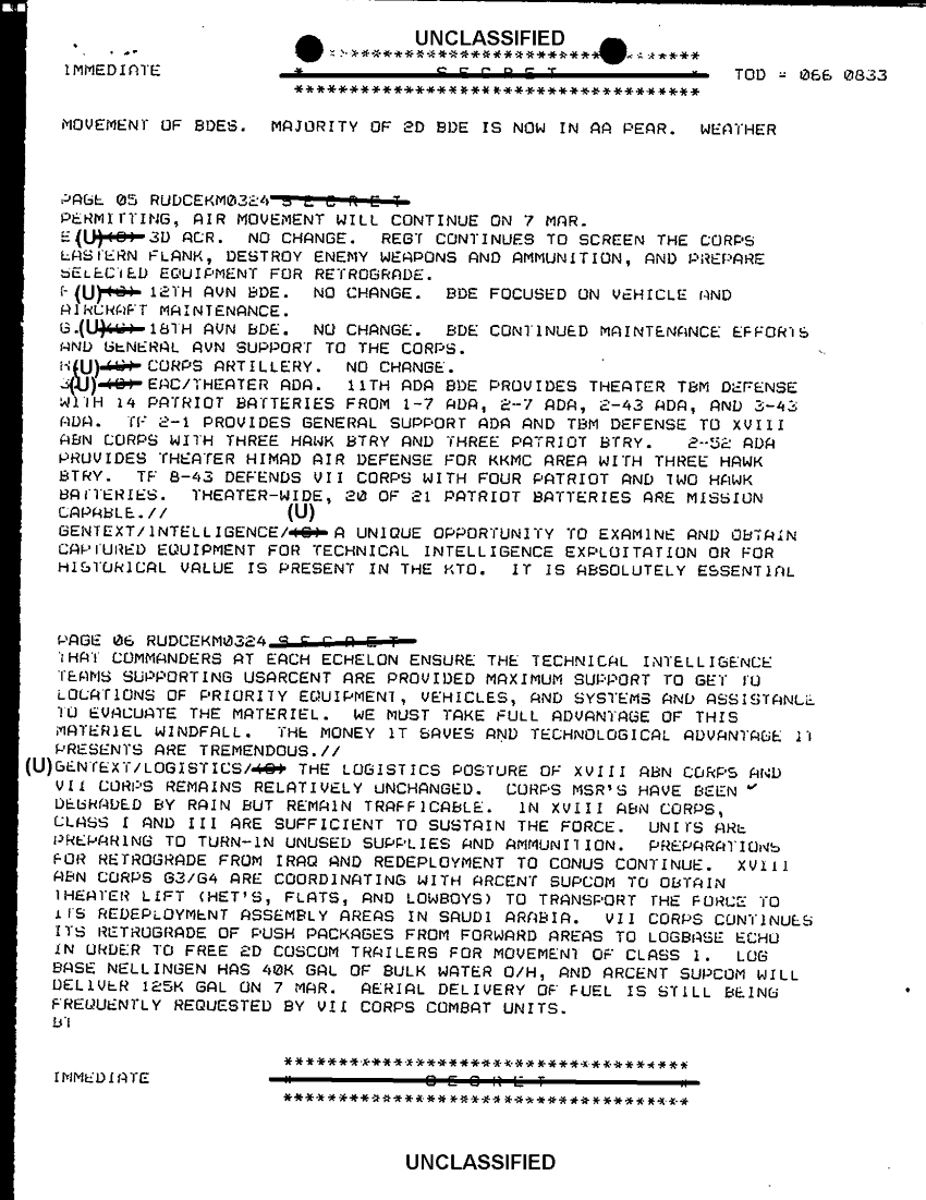 Document 7 f:/Week-29/BX000421/TACTICAL OPERATIONS CENTER LOGS - LUCKY TAC JOURNALS 8-14 MAR 91/sitrep usarcent 7 mar 91:11089615144531