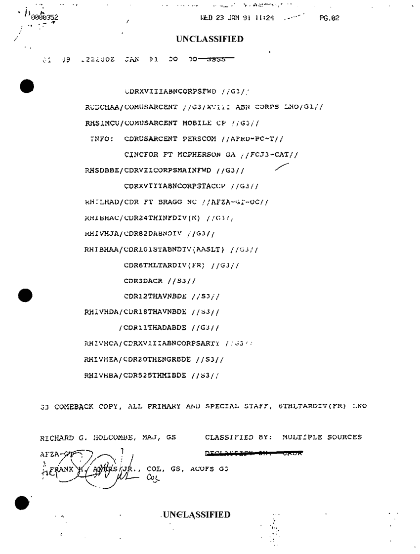 Folder Title = COMMAND REPORTS SITREPS XVIII ABC JAN- FEB 91