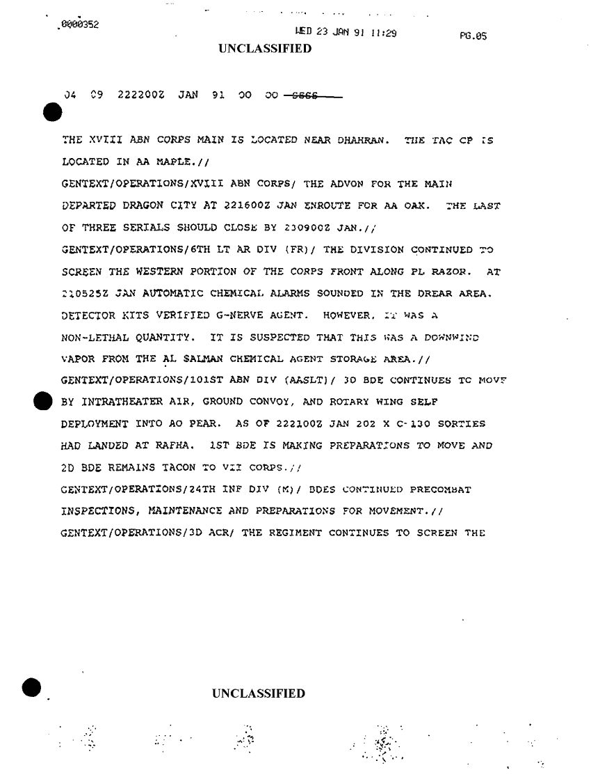 Document 9 f:/Week-30/BX000441/COMMAND REPORTS SITREPS XVIII ABC JAN- FEB 91/sitrep xviii abn corps 23 jan 91:11089615145938
