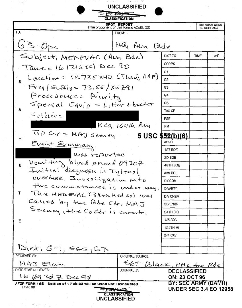 Document 1 f:/Week-22/BX001441/DAILY LOG AND OTHER MISCELLANEOUS CORRESPONDENCE 16 DEC 90/spot report hq avn bde 16 dec 90:11229616373129