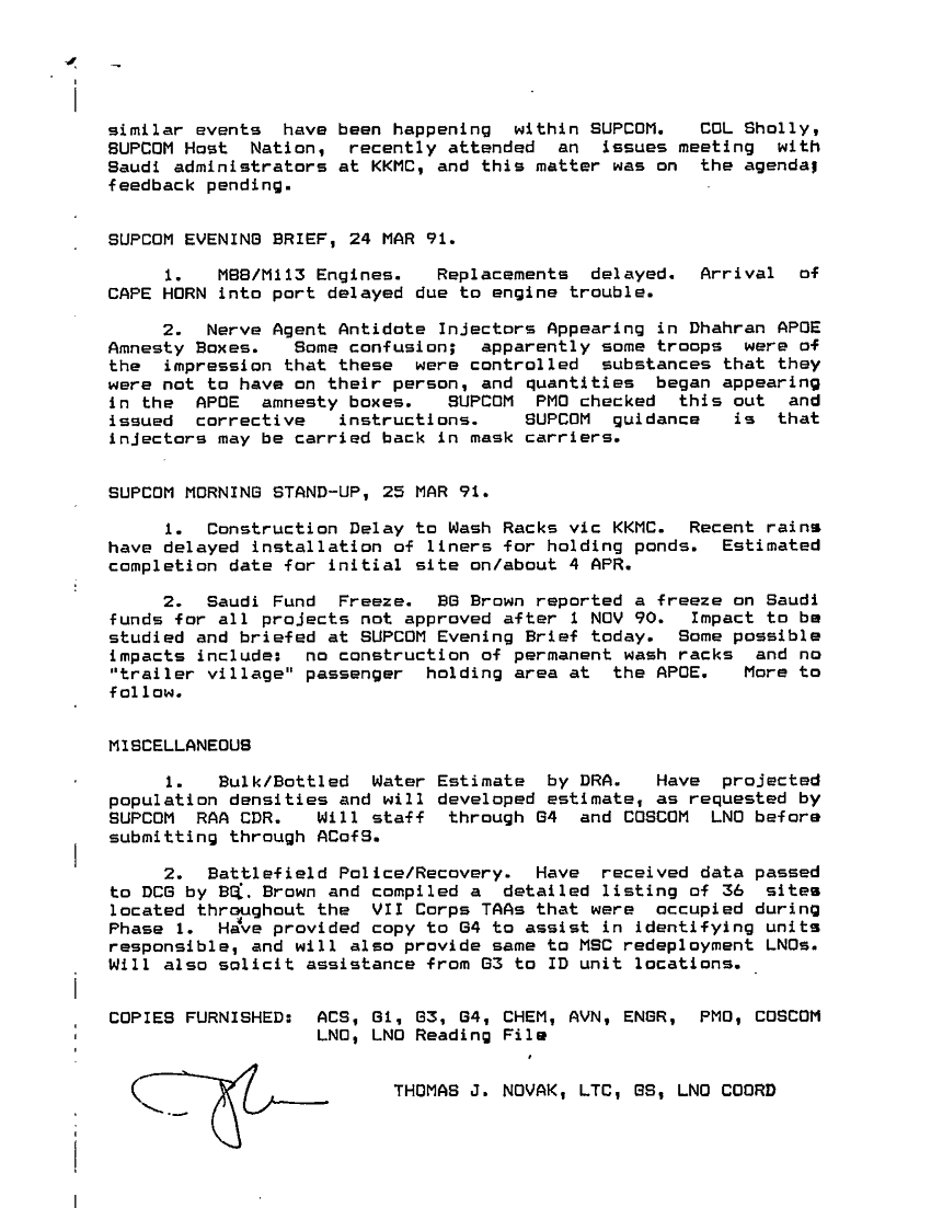 Subject = SUPCOM EVENING BRIEF 23MAR91