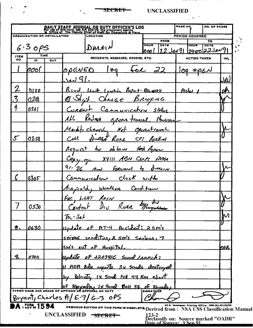 Document 7 f:/Week-22/BX001603/DUTY LOG G3 MAIN 21-26 JAN 91/daily staff journal 33 jan 91:11089615141013
