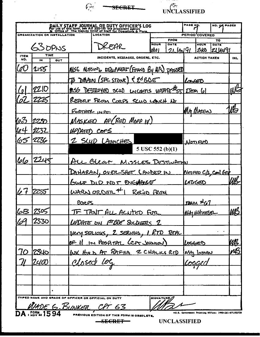 Document 7 f:/Week-22/BX001605/101ST ABN DIV AASLT DUTY LOG JAN 91-D/daily staff journal 21 jan 91:11089615141516