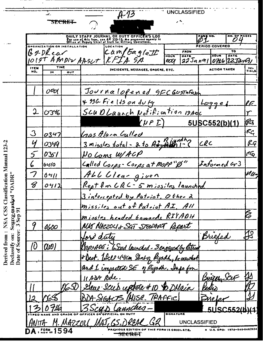 Document 4 f:/Week-22/BX001605/101ST ABN DIV AASLT DUTY LOG JAN 91-F/daily staff journal:11089615141617