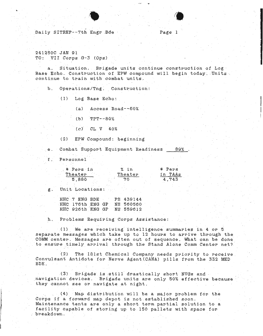 Document 41 f:/Week-24/BX000213/SITUATION REPORTS 7TH ENG BDE 22 DEC 90- 10 APR 91/daily sitrep 7th engineer bde:11089615143325