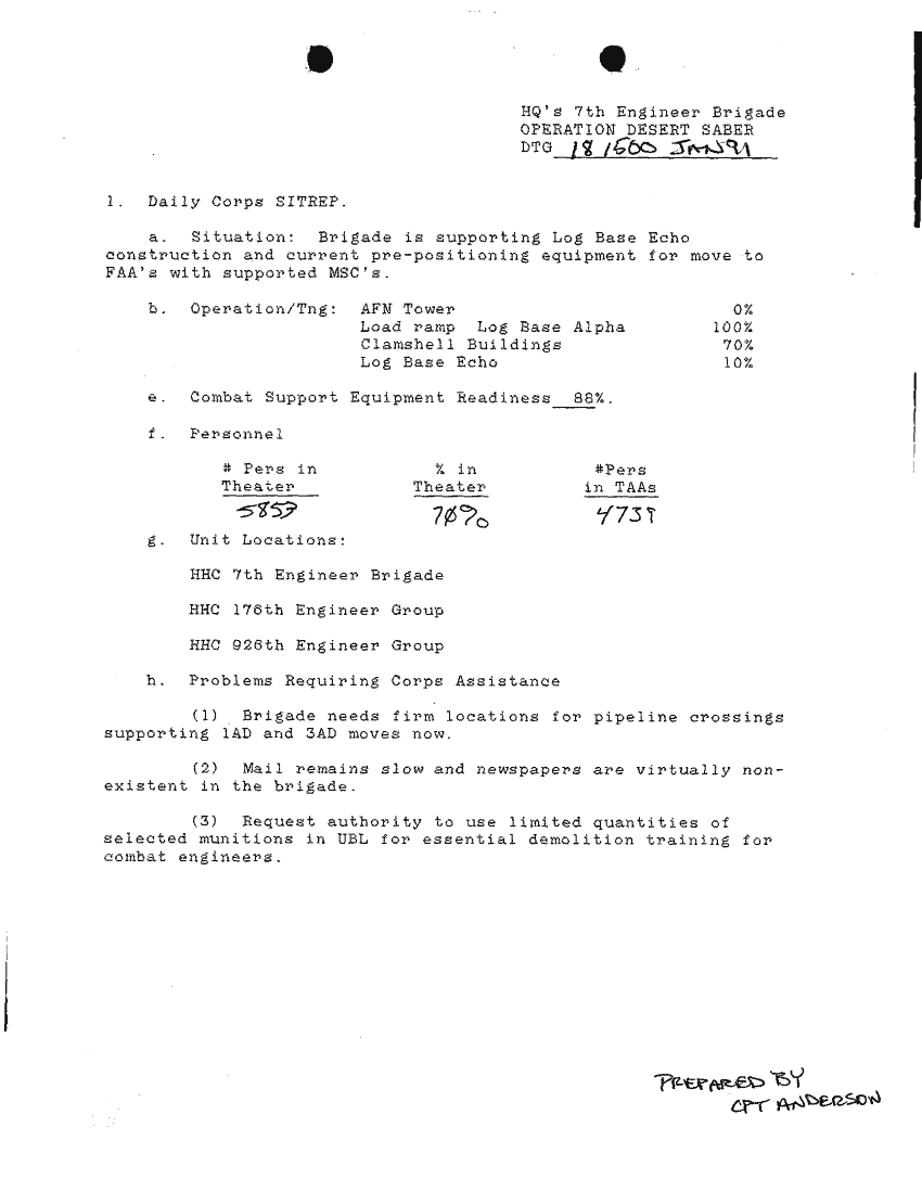 Document 41 f:/Week-24/BX000213/SITUATION REPORTS 7TH ENG BDE 22 DEC 90- 10 APR 91/daily sitrep 7th engineer bde:11089615143325