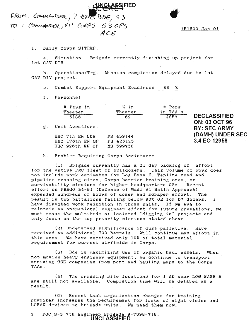 Folder Title = SITUATION REPORTS 7TH ENG BDE 22 DEC 90- 10 APR 91